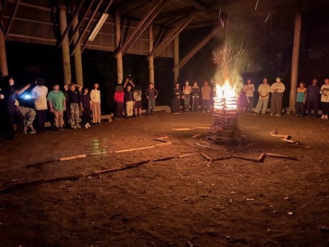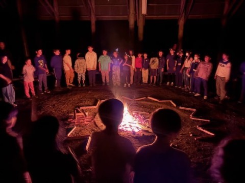 キャンプファイアー。キャンプファイアー係の児童が中心となって進めてくれました。歌にゲームにダンスありと大盛り上がりのキャンプファイアーとなりました。スペシャルゲストも登場してくれ更に子どもたちは大喜び。忘れられない思い出になったようです。