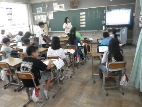 1組は国語,決められた漢字を使って,物語を作っていました。