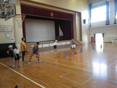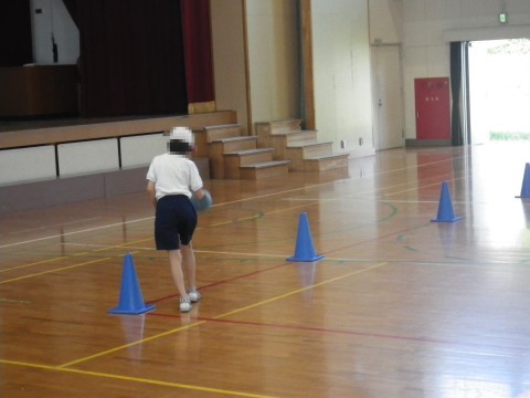 なかよし学級の子どもたちが体育で,ドリブルの練習をしていました。
