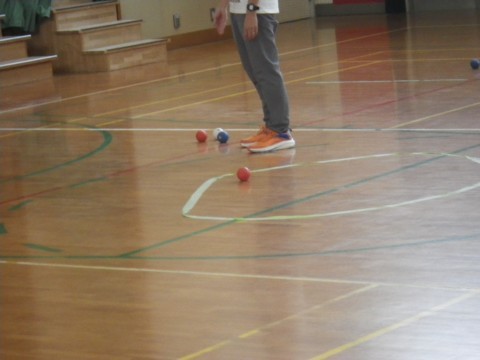 2組は総合的な学習の時間に,障がい者スポーツのボッチャをしていました。今週の金曜日,大仙小学校との交流で行います。