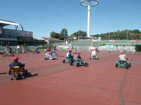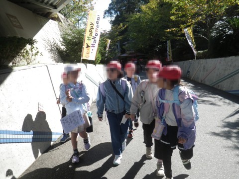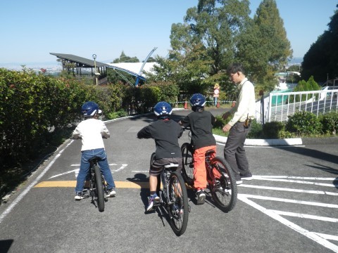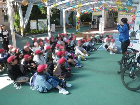 秋晴れの下,関西サイクルスポーツセンターへ校外学習に行きました。園内は全てグループでの自由行動です。友だちと仲良く過ごすことが出来ました。おうちの方に作っていただいたお弁当を食べ(中には自分で弁当を作った子もいました),元気を出し,午後からもおもしろ自転車やアトラクションを楽しみました。出発式,解散式も実行委員の子どもたちが進めました。大きな声でしっかり話す姿に成長を感じました。