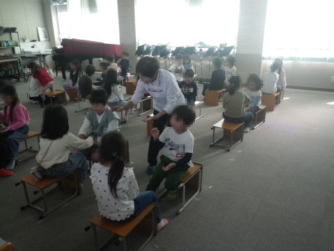 2組は音楽で,「おちゃらか ほい」を元気よく歌っていました。