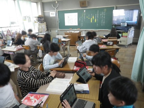 2組は国語,自然環境を守るために,海洋問題,ごみ問題,食品ロス,砂漠化について,班ごとに資料を選んでいました。