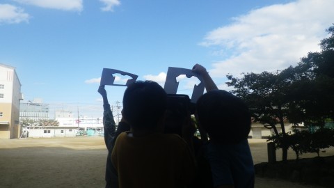 運動場付近を歩いていると空に向けてカメラを向けている2年生に出会いました。