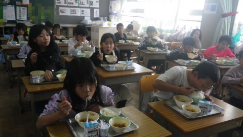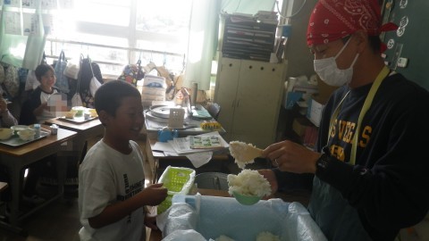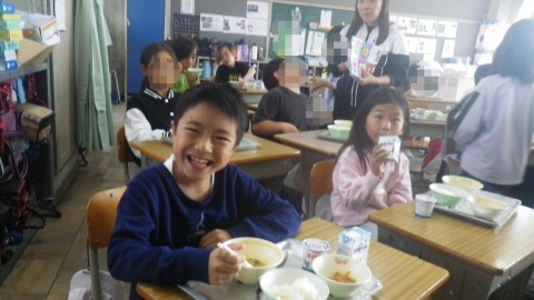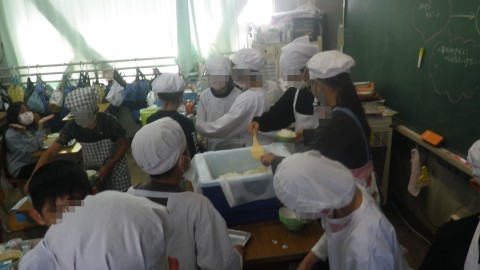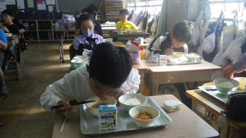 美味しそうに食べています。ご飯を山盛り食べている児童もいました。