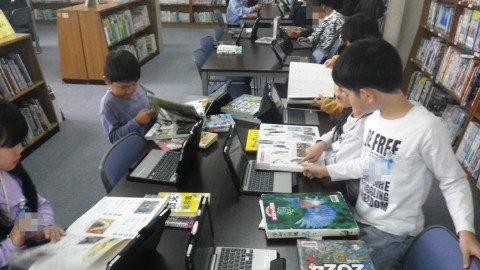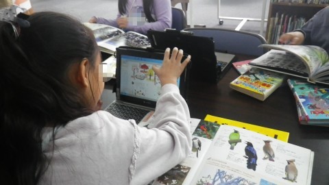 図書室へは並んで移動します。調べ学習が上達してきました。