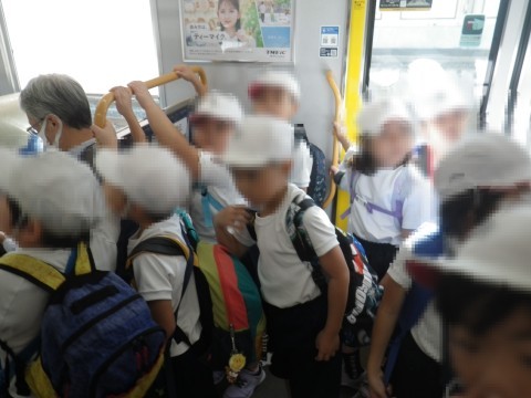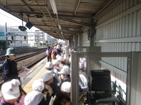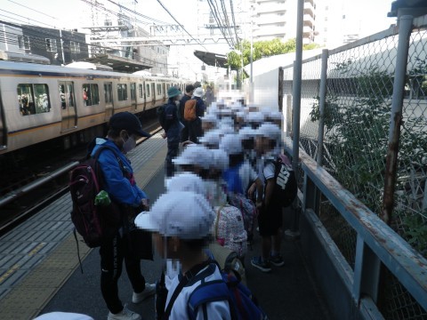 1・2年生合同のグループで上野芝駅まで歩きました。2年生が1年生の手をつないでしっかり先導しました。三国丘駅で泉北高速鉄道を乗り継ぎました。車内の態度もとても静かで良かったです。