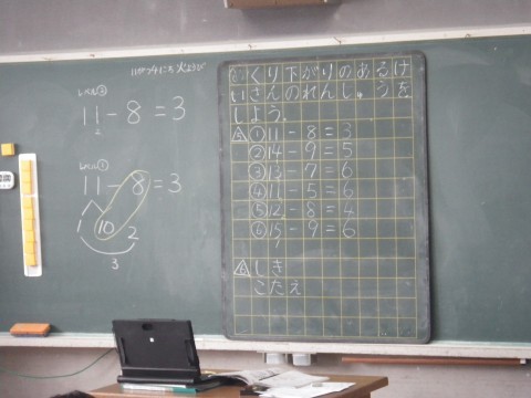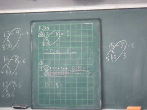 算数は,くり下がりの引き算です。集中して取り組んでいました。