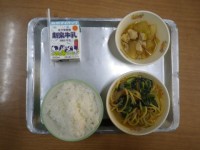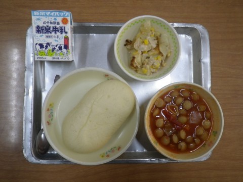 今日の献立:オリーブパン・牛乳・ミネストローネ・ツナとポテトのマヨネーズ風み焼き