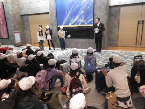 鳥羽水族館を出た後は,1時間バスに揺られて,本日の宿泊ホテル「アクアフォレスト」に着きました。入館式ではホテルの方のお話もしっかり聞きました。