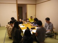 部屋の友達と楽しく夕食をとりました。食べすぎて苦しそうな子もいました。