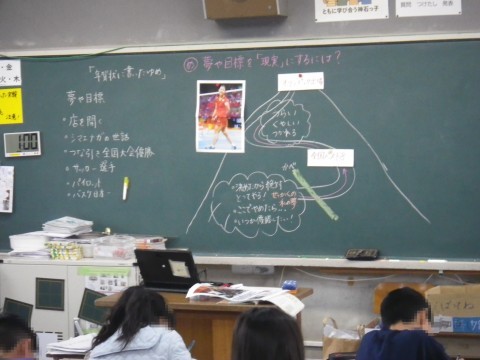 1組は道徳,夢や目標を「現実」にするのはどうしたらよいのか,考えていました。