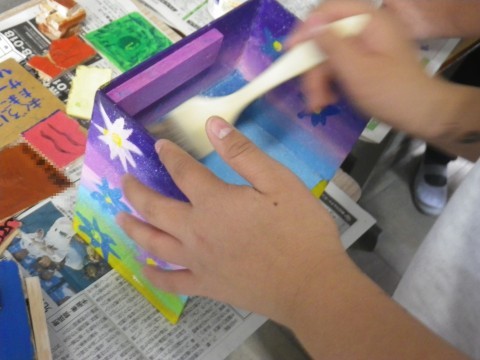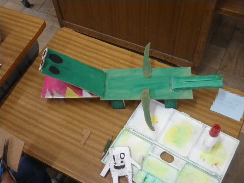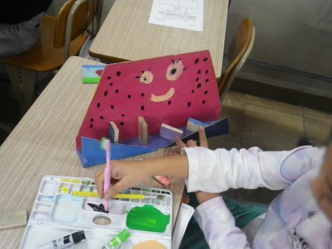 2組は図工,「カクカク板を組み合わせたら」を完成させていました。