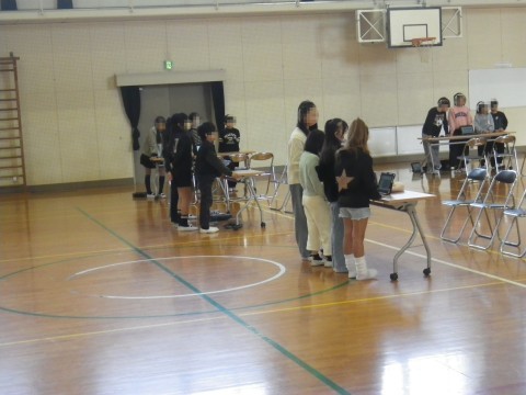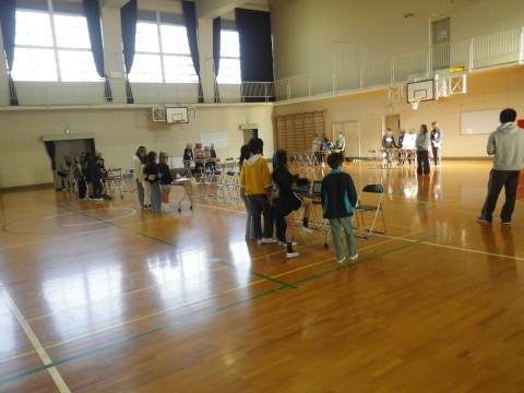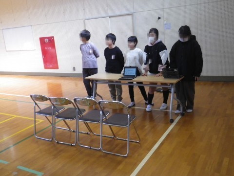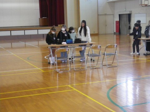 明日の学習参観は,体育館で行います。総合的な学習の時間に,北海道のえりも岬小学校とオンラインで交流します。そのための調べ学習の様子や調べたことを保護者の方に見ていただきます。その準備をしていました。