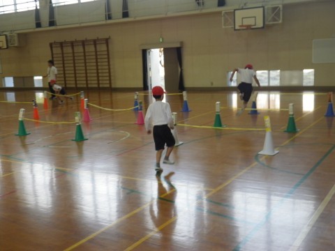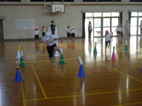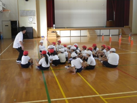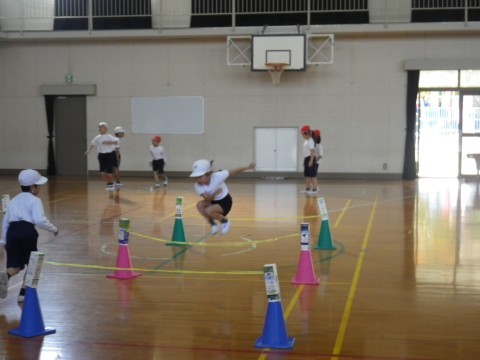 2年生は体育,跳ぶ運動,パイナップルジャンプをしていました。