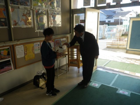 赤い羽根の共同募金2日目です。教頭先生も募金してくださいました。