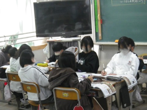 1組は社会,明治時代の新しい国づくりについて,自分たちで調べていました。