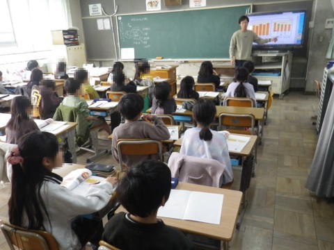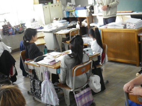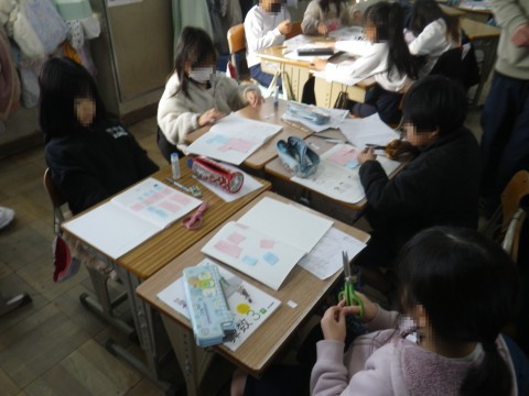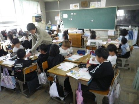 2組は算数,分数の大きさについて,班ごとに学習していました。