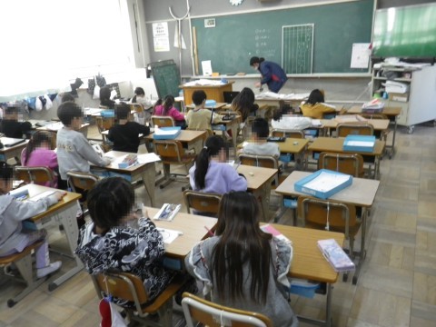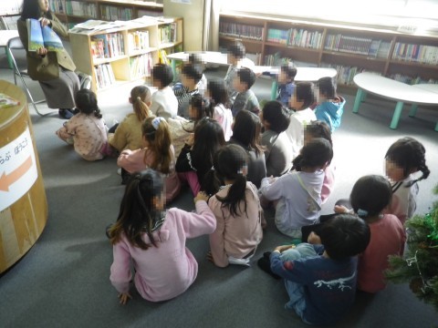 1組は図書,選んだ本をしっかり読んだ後,先生に読み聞かせをしてもらいました。