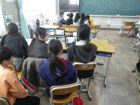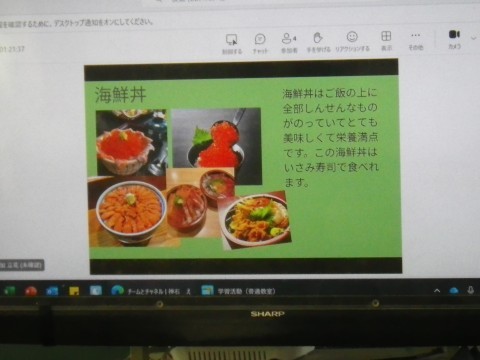 北海道のえりも岬小学校とのオンライン交流授業を行いました。3校時は,神石小学校の子どもたちがえりも岬小学校の子どもたちに,堺の刃物や大阪の郷土料理,大阪万博,ふとん太鼓のことなどを伝えました。4校時はえりも岬小学校の子どもたちが,キタキツネ,海鮮丼,ひげあざらしなど,学校の回りで見られるいろいろなことを教えてくれました。短い時間でしたが,遠く離れた場所の子ども同士がオンラインでつながり交流できるのも現代ならではのことです。