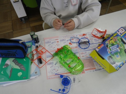 1組は理科,電流と電磁石の実験キットで学習していました。