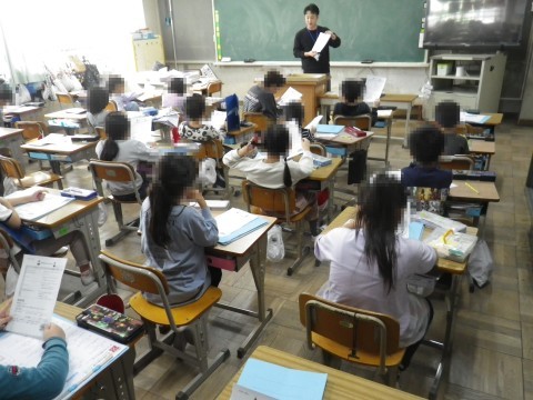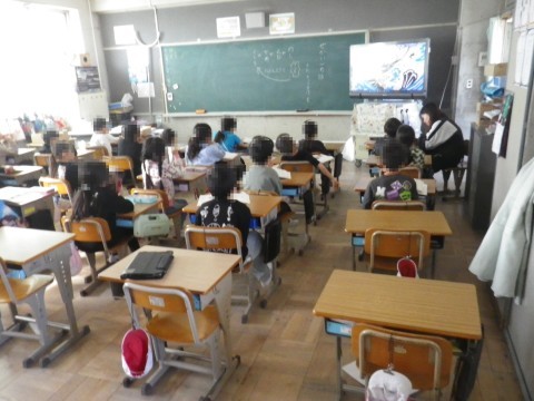 1組は冬休みの宿題の説明,2組は国語,せかい一の話の朗読を聞いていました。