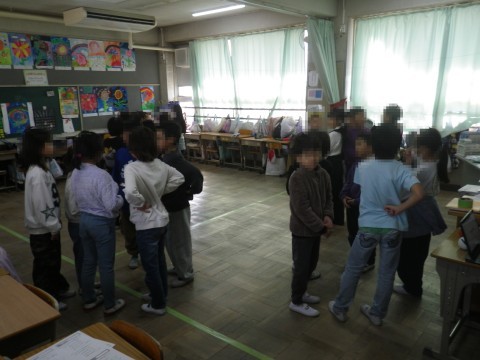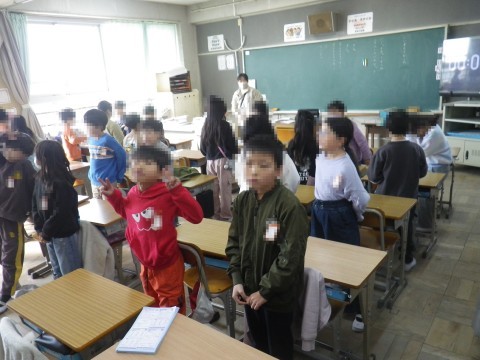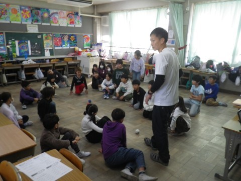 1組も2組も学期末のお楽しみ会をしていました。1組はジェスチャーゲーム,2組はボッチャをしていました。