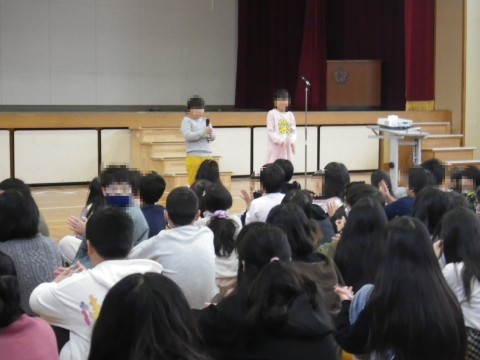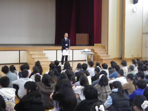 校長は,子どもたちの2学期の頑張りを話した後,冬休みの間に,2026年頑張りたいめあてを立てること,3学期の始業式(1/8)には元気で登校することの2つの宿題を出しました。子どもたちはしっかりと話しを聞いていました。
