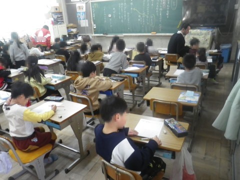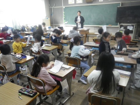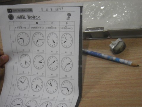 1組は算数,時間と時刻のプリントをしていました。