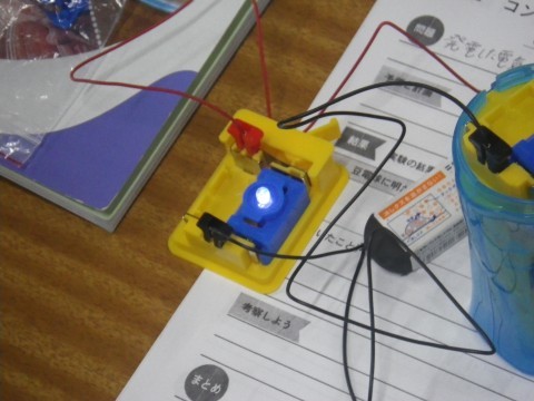 1組は理科,コンデンサに蓄えた電気の利用の実験をしていました。