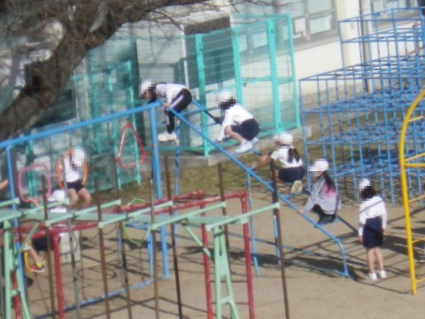 2組は体育,遊具を使ってしっかり体をきたえていました。