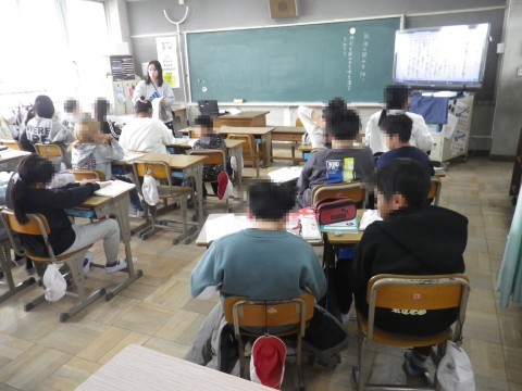 1組は家庭科,家族のだんらんについて話し合っていました。