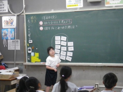2組は算数,100をもとにして,1000より大きい数について学習していました。