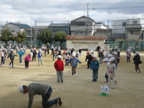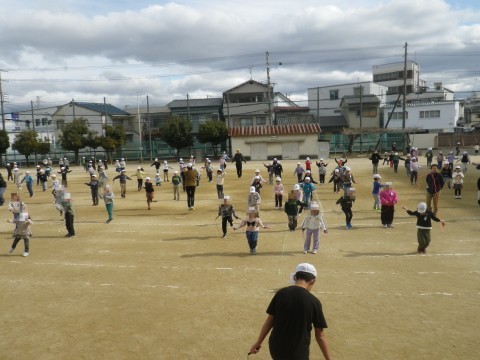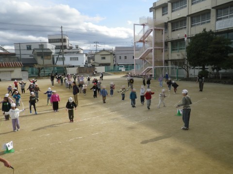 今日から昼休みになわとび運動が始まりました。今日は,1年生~3年生です。元気いっぱい,なわとびをしていました。