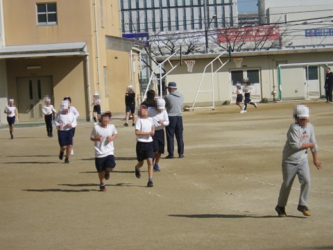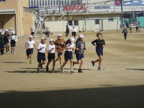 合同体育をしていました。長距離走の後,長縄跳びをしていました。寒さに負けず,頑張っていました。