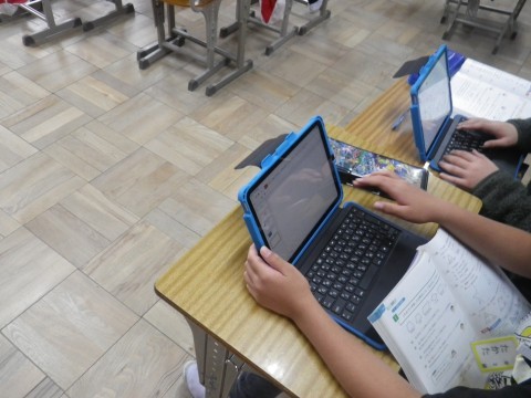 新しいタブレットもしっかり使いこなせています。さすが6年生です。