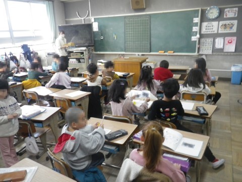 2組は音楽,「たぬきの糸車」を元気よく歌っていました。
