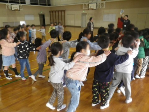 本校校区内から堺聴覚支援学校に通学しているお子さんと本校の2年生の子どもたちが,体育館で交流授業を行いました。一緒に新聞紙リレーやじゃんけん列車などのゲームを行いました。同じ校区内に住む子どもたちです。道で会った時など,あいさつできるといいですね。