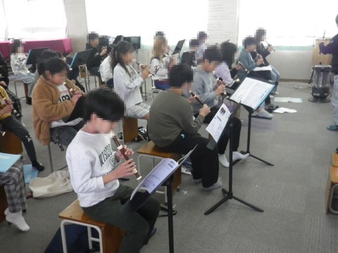 2組は音楽,リコーダーで威風堂々を演奏していました。