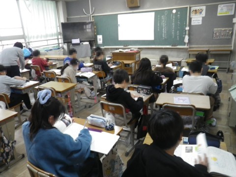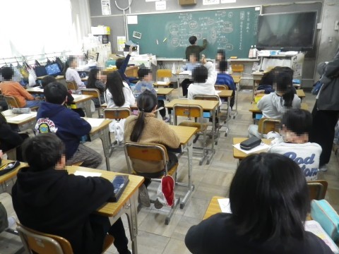2組は国語,「風船でうちゅうへ」の段落の要約文を考えていました。
