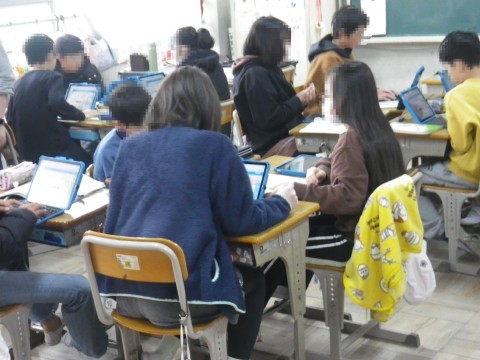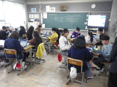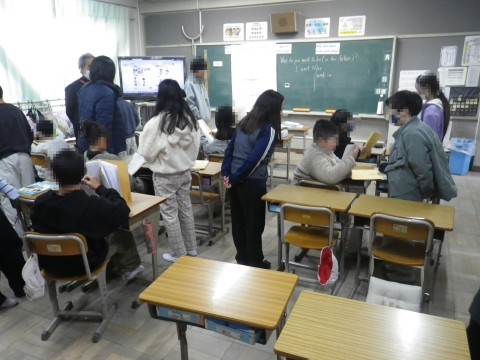 1組は外国語,「What do you want to be in the future?(将来,何になりたいですか?)」をペアで会話していました。