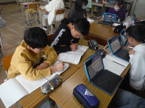 自由進度学習で算数の学習を進めています。今日から2月になりました。6年生が神石小学校で過ごす期間は残り2月と3月の二か月となりました。
