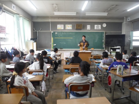 算数の学習です。黒板の長さがどれくらいなのかみんなで考えを出しながら答えを求めていました。