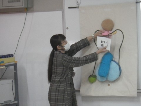 助産師の先生と保健福祉局の方にご来校いただき,「いのちの授業」を行いました。男性器,女性器のしくみや精子,卵子,生命の誕生について教えていただきました。赤ちゃんが生まれてくるときの様子について,助産師の先生から女性の骨盤模型と赤ちゃんの人形を使って教えていただき,人が生まれてくることがいかにすごいことなのかが分かりました。