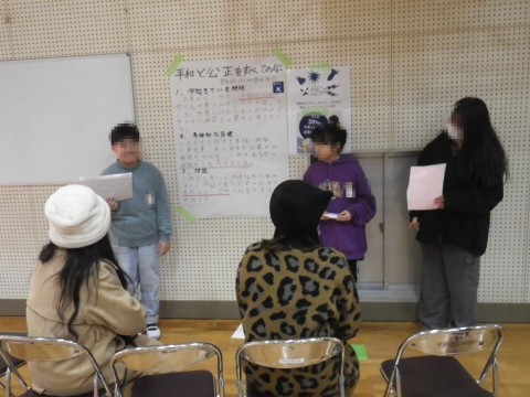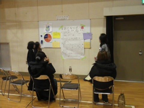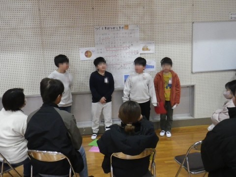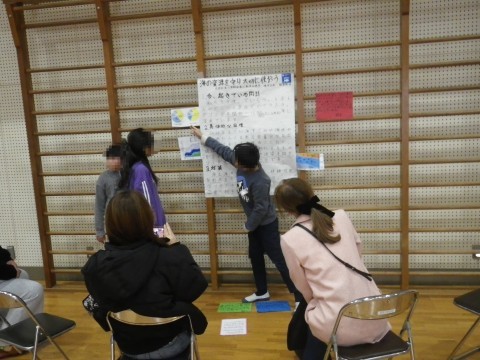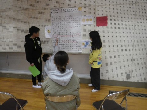 総合的な学習の時間に調べていた「SDGs」について,グループ毎に発表しました。その後,親子交流として,紅白玉入れとじゃんけん列車を行いました。