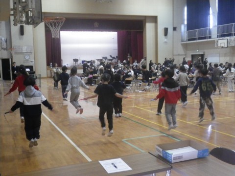 学習参観で,「いつもありがとう会」を開催しました。「それもいいね」で保護者の皆様をお迎えしました。そして,1年間の成長として,リズム縄跳びを披露しました。その後,「しあわせはこべるように」を歌いました。「にじのむこうに」は手話を交えて歌い,その後,保護者の方々にも手話を伝えました。最後は感謝の手紙を渡しました。