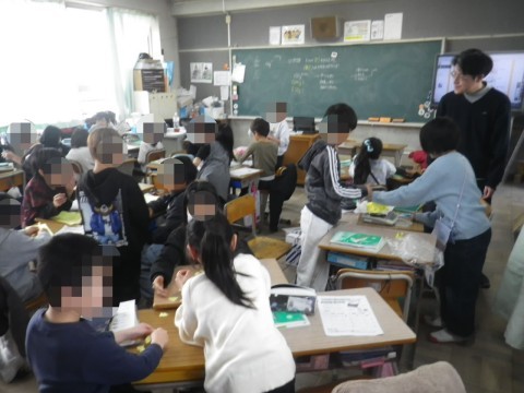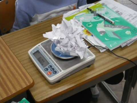 理科では,紙を使って,形を変えると物の重さは変わるかということを実験していました。