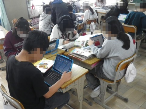 社会科では,日本とつながりの深い国々(韓国,中国,アメリカ,ブラジル,サウジアラビア)について調べていました。