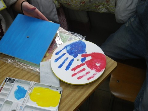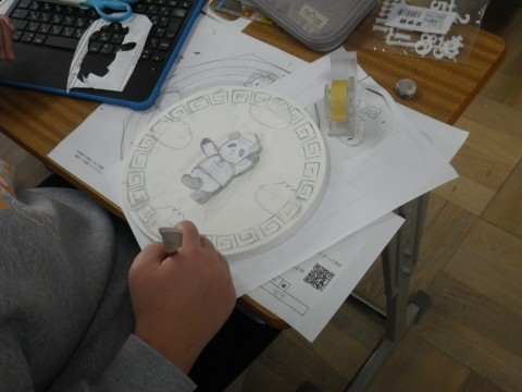 2組は図工,卒業制作「自分だけの時計」を一生懸命作っていました。