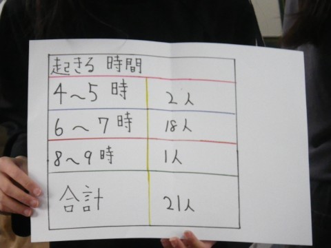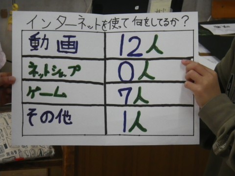 1組は国語,身近な生活アンケートの結果を表やグラフでまとめていました。